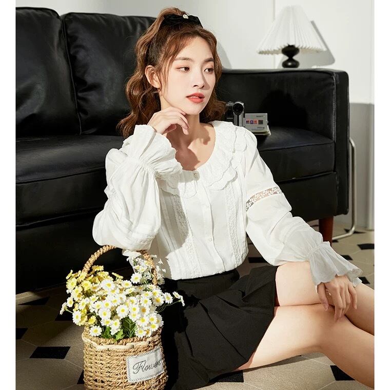 韓国風レースホワイトシャツ CSH0002