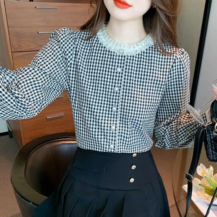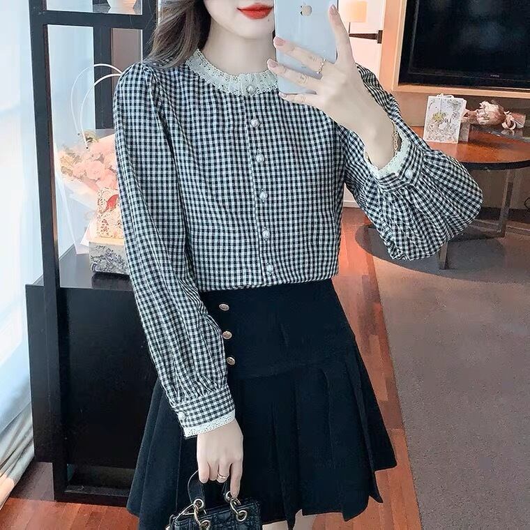首元のフリルが可愛いギンガムチェックのトップスです。