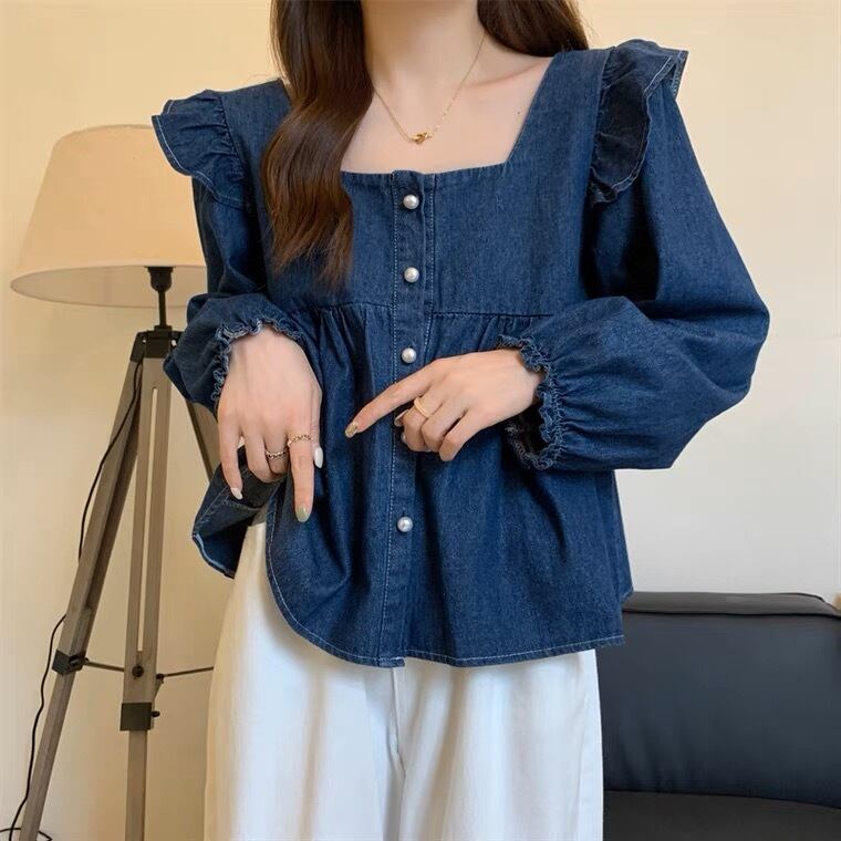 肩のフリルが可愛いデニムトップスです。