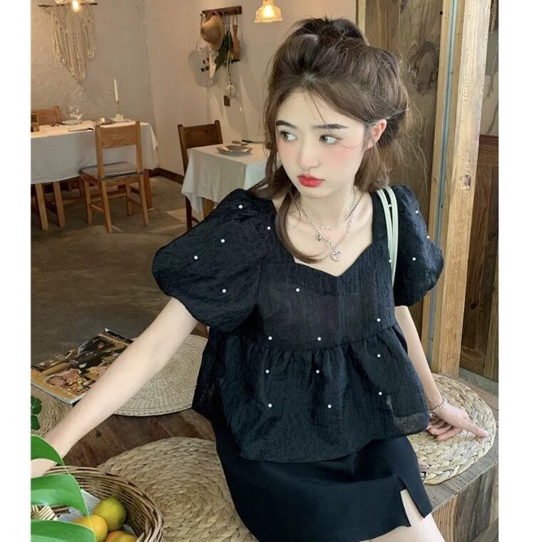 パフスリーブが可愛いドットブラウスです。