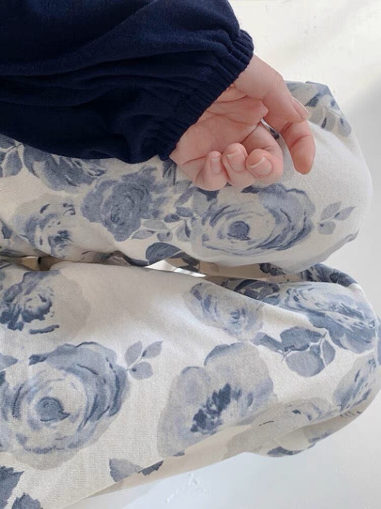 淡いカラーの花柄が可愛いパンツです。