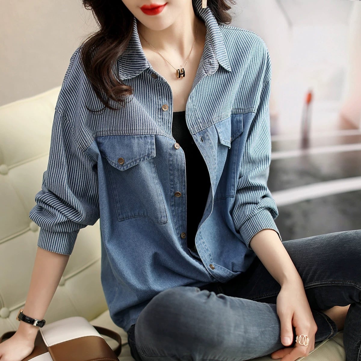 切り返しが可愛いデニムシャツです。