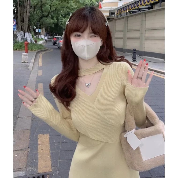 胸元のカットアウトが可愛いワンピースです。