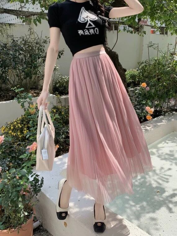 透け感が可愛いロング丈スカートです。