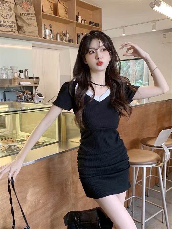 Vネック ミニ丈 タイトワンピース G10CON0096