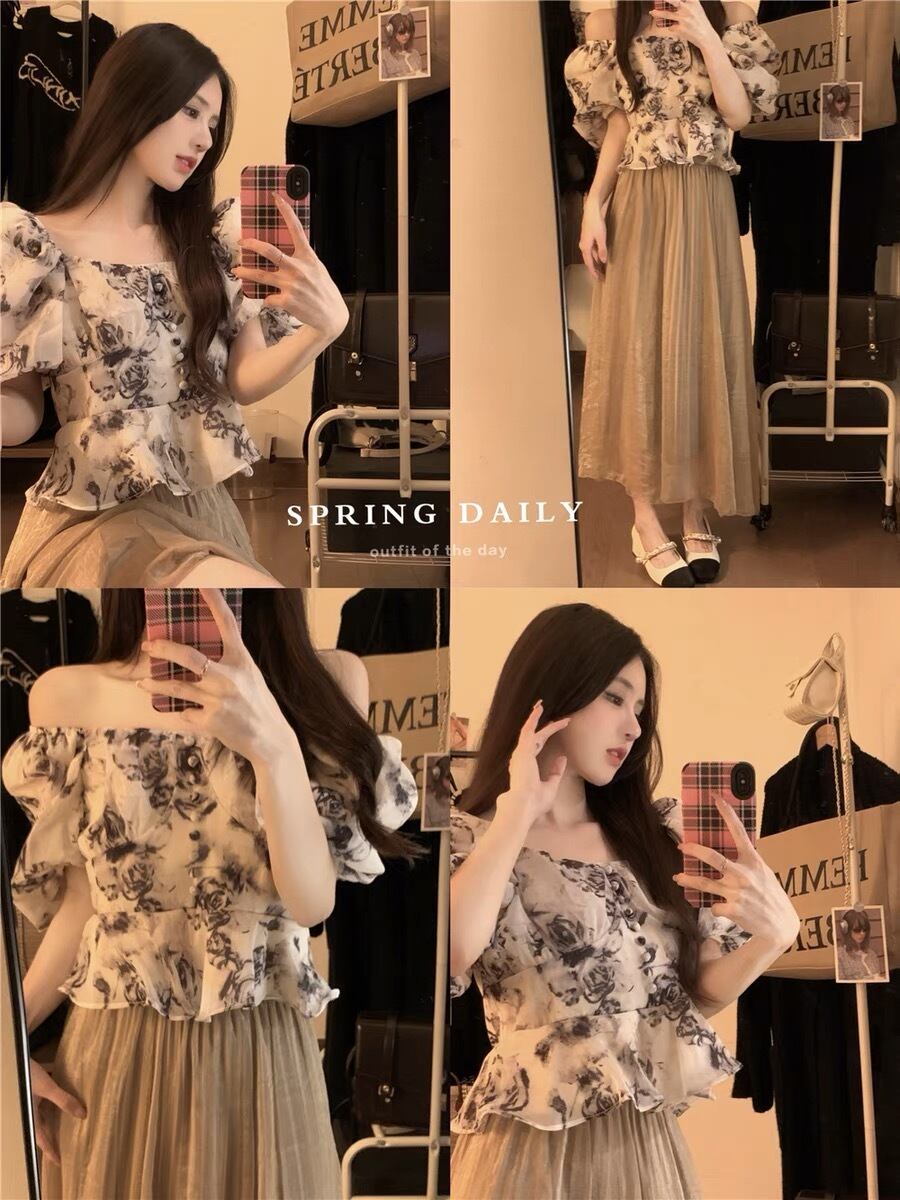オフショルダー 花柄トップス G10CT0068