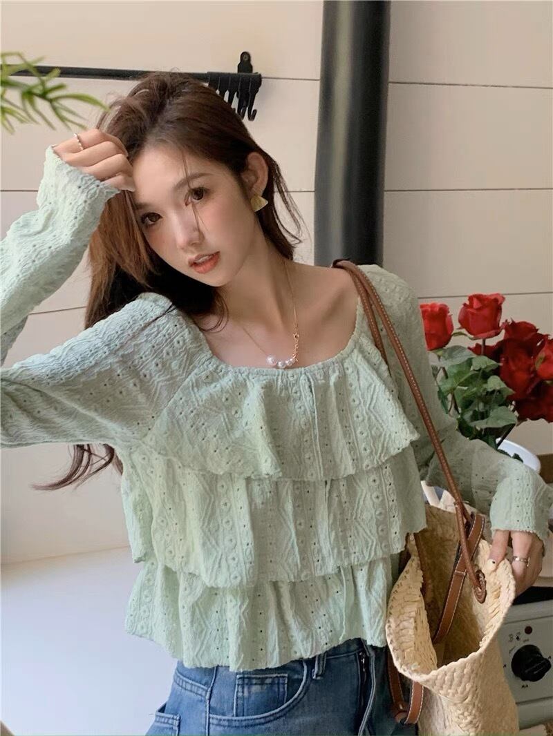 春カラーが可愛いフリルトップスです。