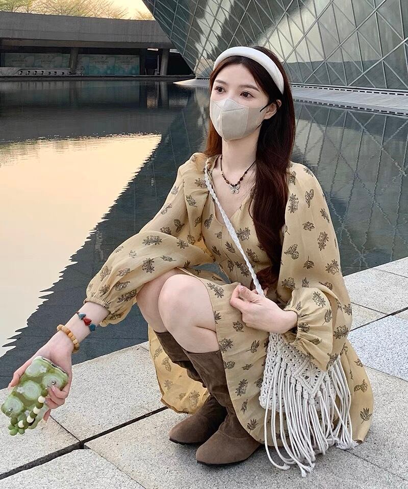 リーフ柄 ミニ丈ワンピース G10CON0101