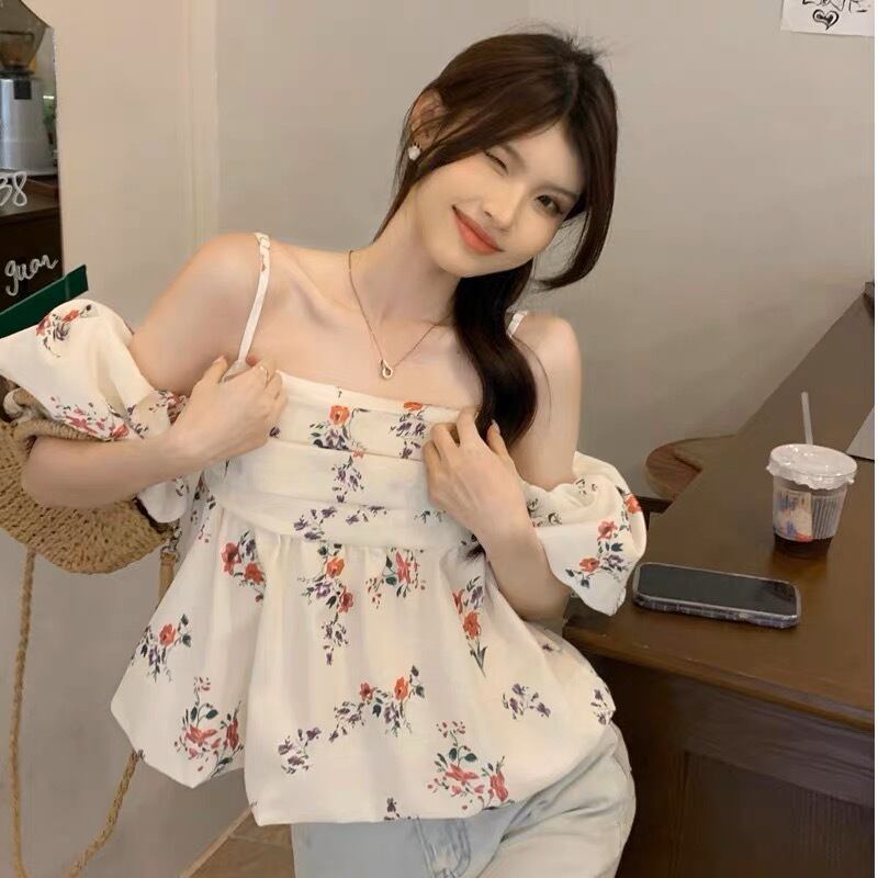 ボリューム袖 オフショルダー 花柄トップス G10CT0078