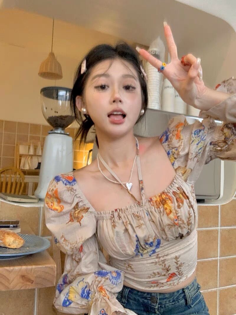 ボリューム袖がお洒落な花柄トップスです。