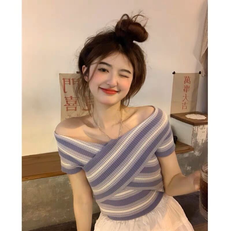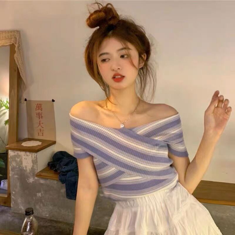 オフショルダー ボーダー トップス G10CT0082