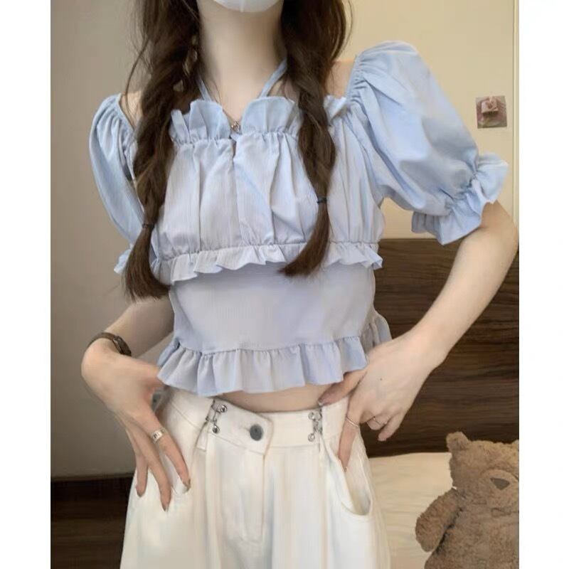 フリルが可愛いショート丈のトップスです。
