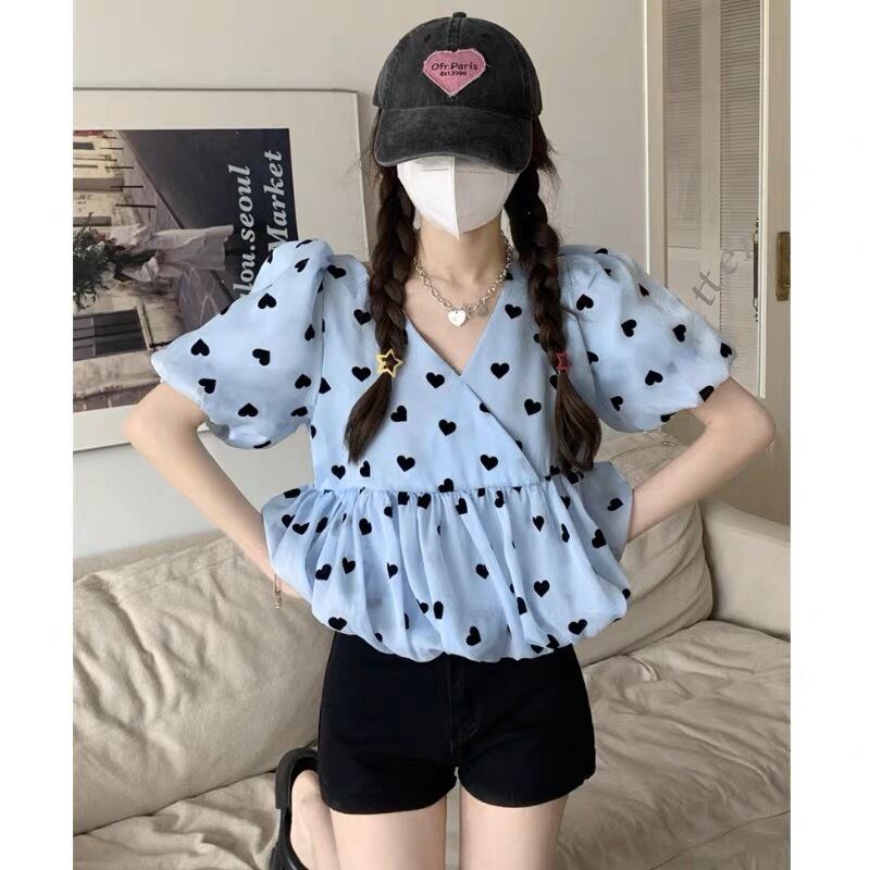 ボリューム袖 ハート柄トップス G104CT0012