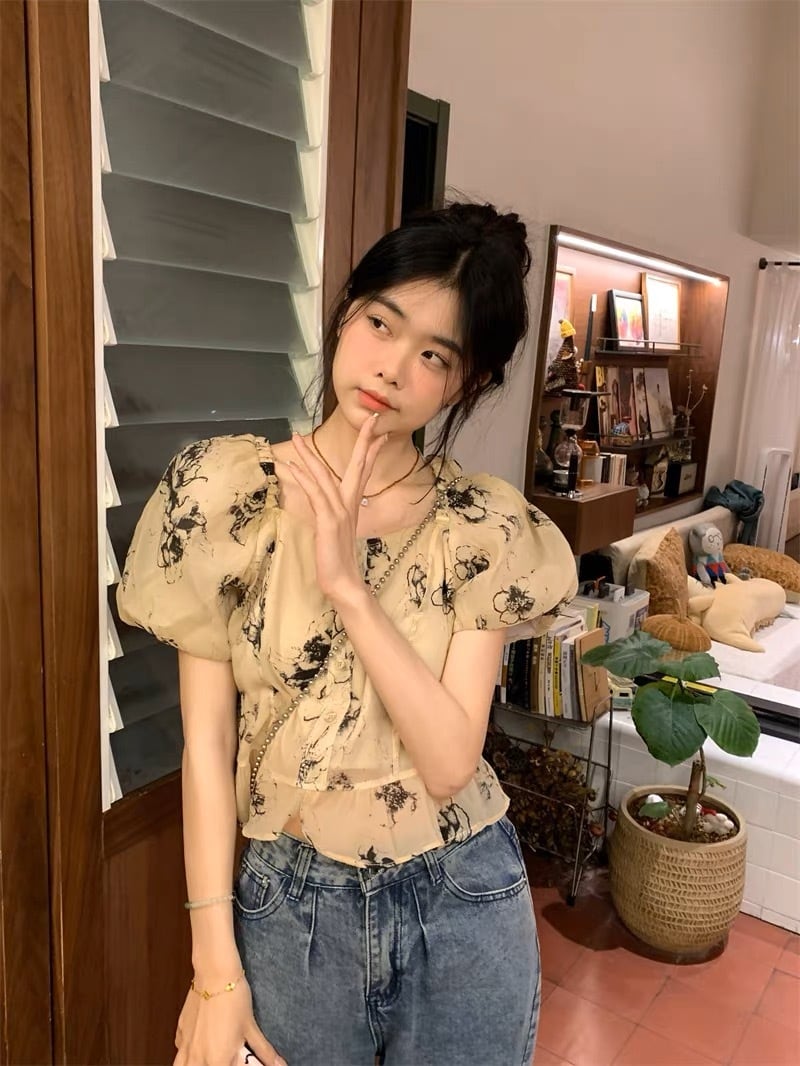 パフスリーブ 花柄トップス G104CT0013