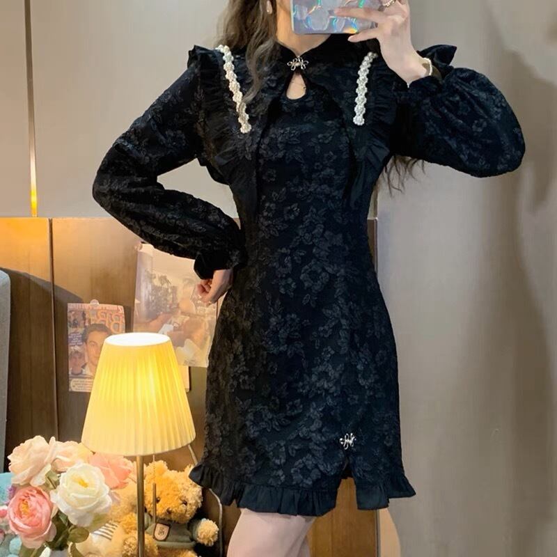 花柄が可愛いスタイル良く見えるミニ丈ワンピースです。