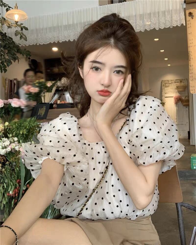 こちらはボリューム袖 ドット柄トップス G104CT0018の商品ページです。