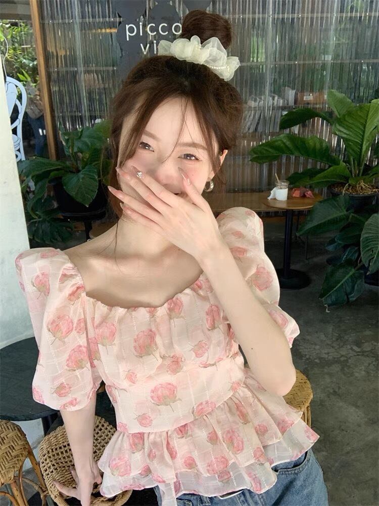 花柄が可愛いペプラムトップスです。