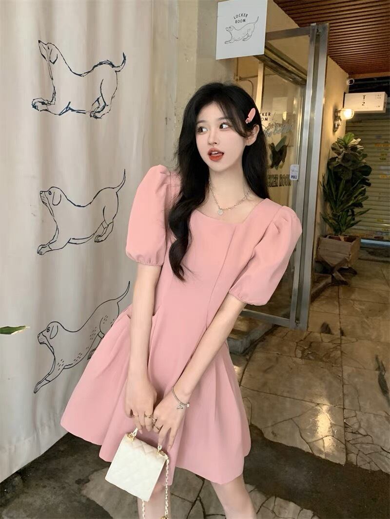 パフスリーブが可愛いフレアワンピースです。