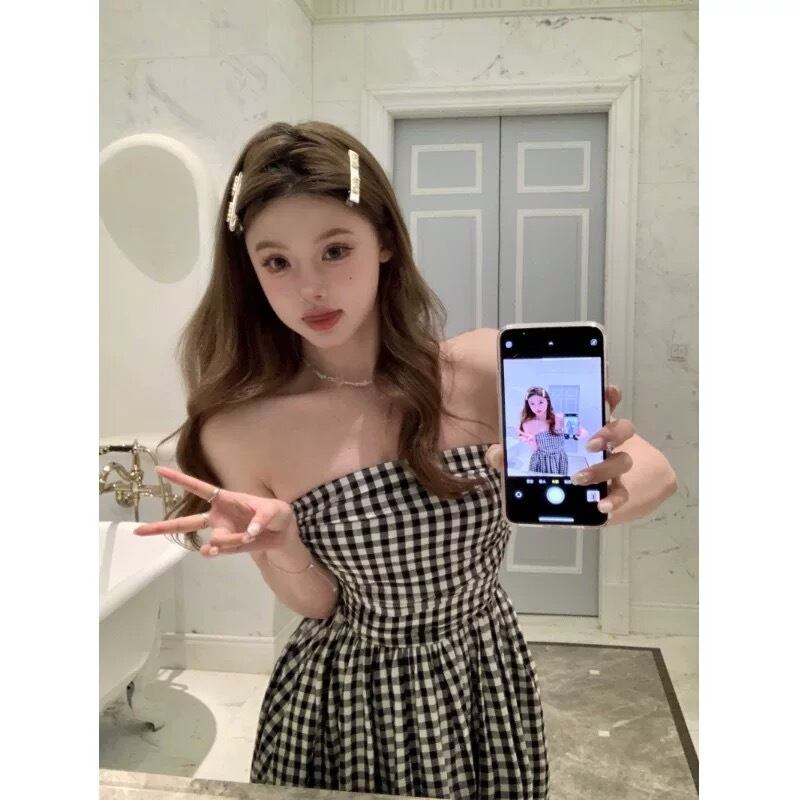 チェック柄が可愛いチューブトップのワンピースです。