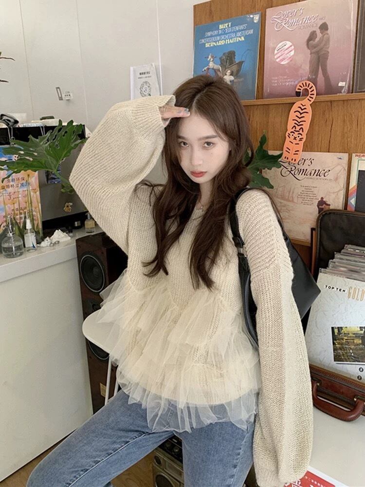 ふわふわのチュールが可愛いニットトップスです。