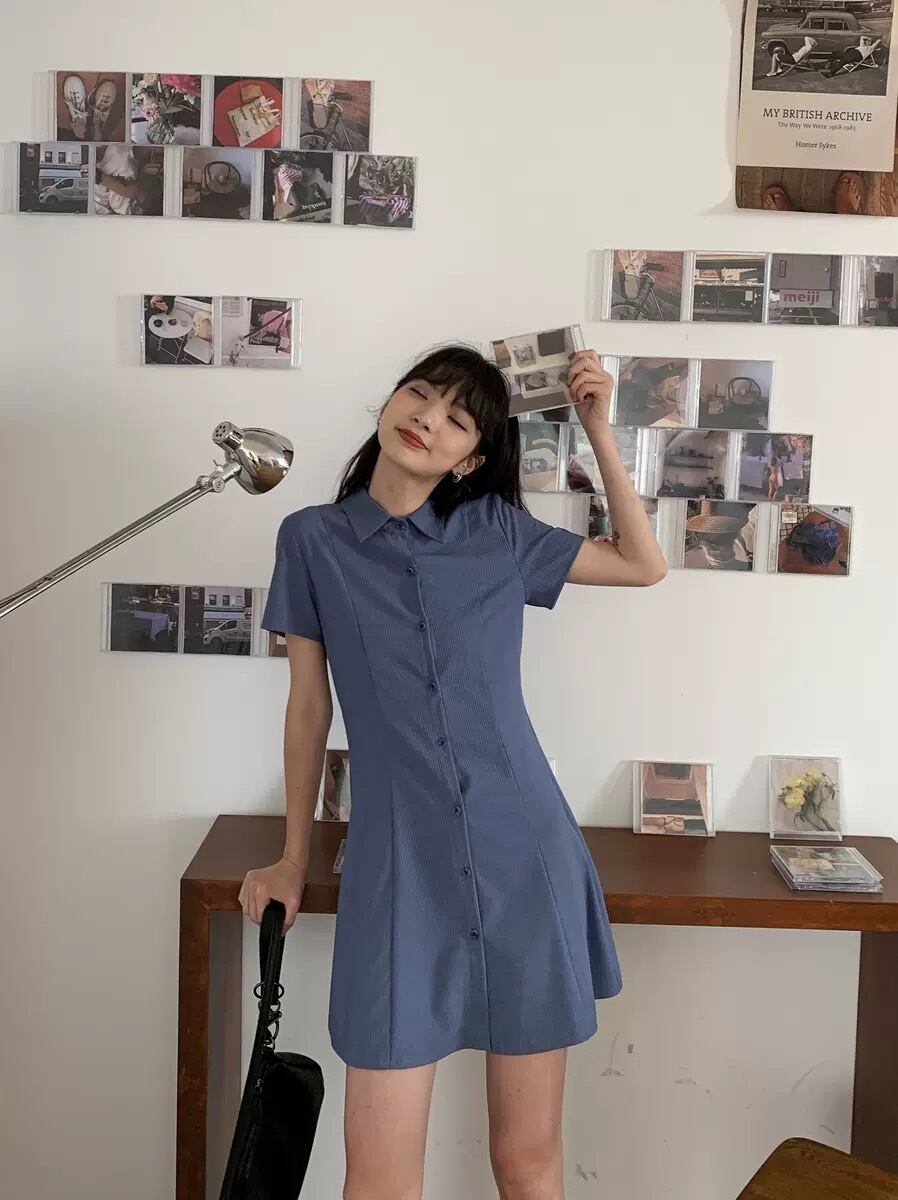 襟付きのショート丈ワンピースです。