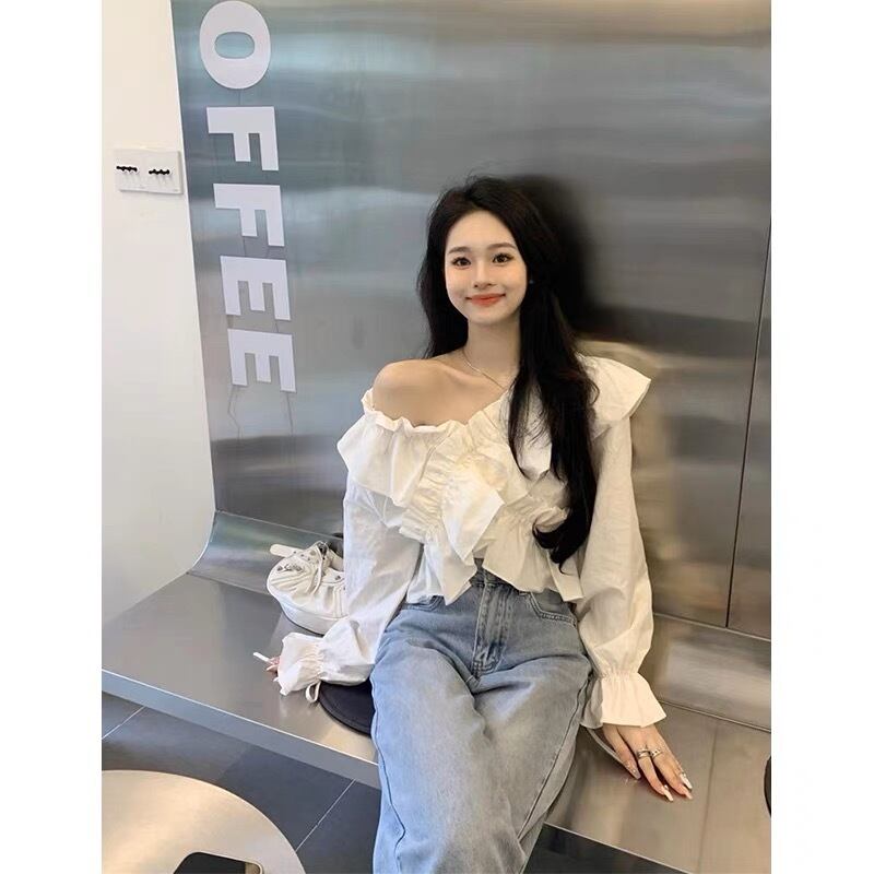 大きめのフリルが可愛いオフショルダーのトップスです。