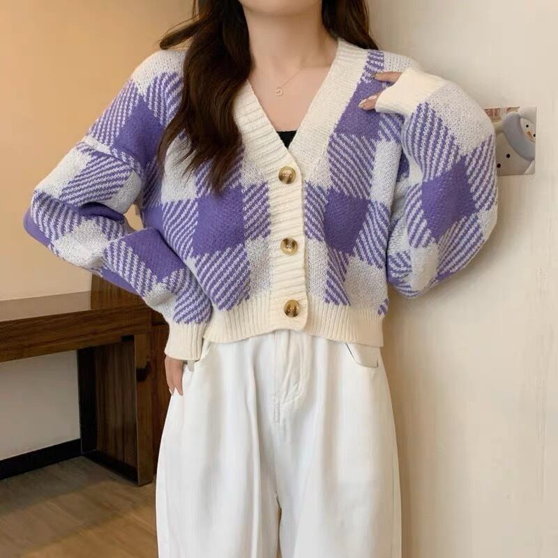 チェック柄が可愛いニットカーディガンです。