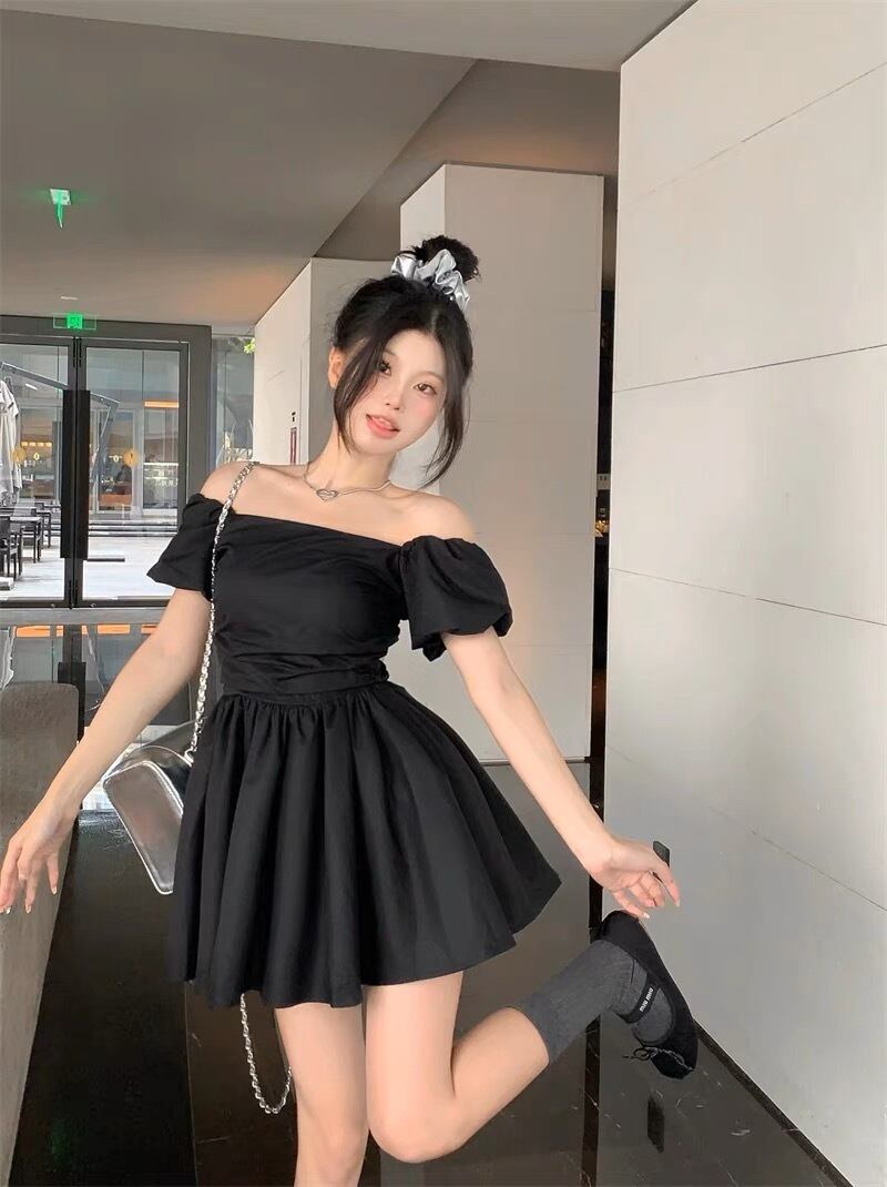 オフショルダーがお洒落なミニ丈のフレアワンピースです。