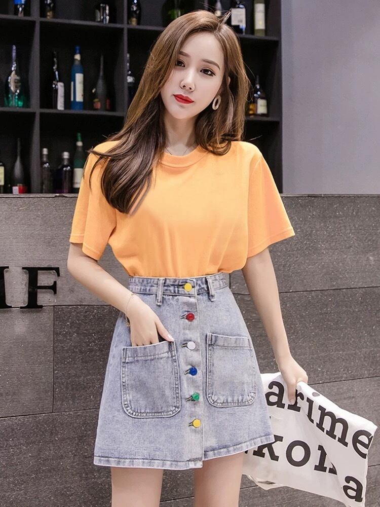 カラフルボタン デニムスカートG124CSK0019