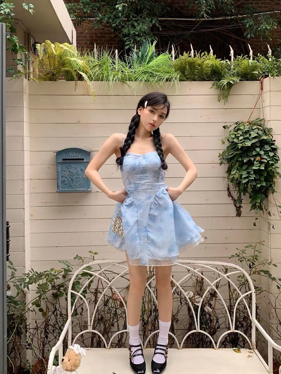 淡いブルーが可愛いミニ丈のフレアワンピースです。