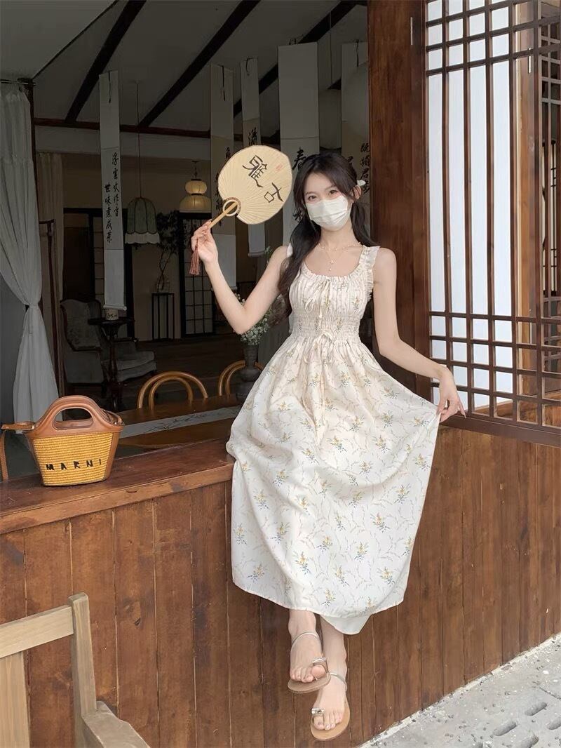 花柄が可愛いロング丈ワンピースです。