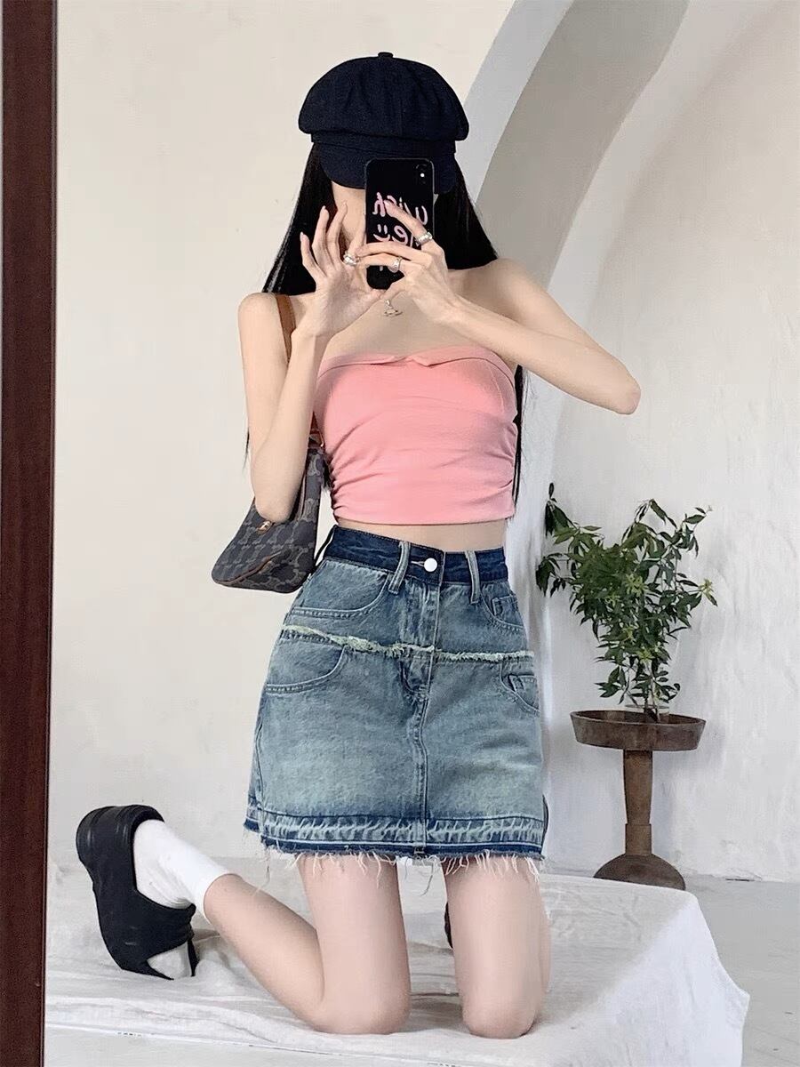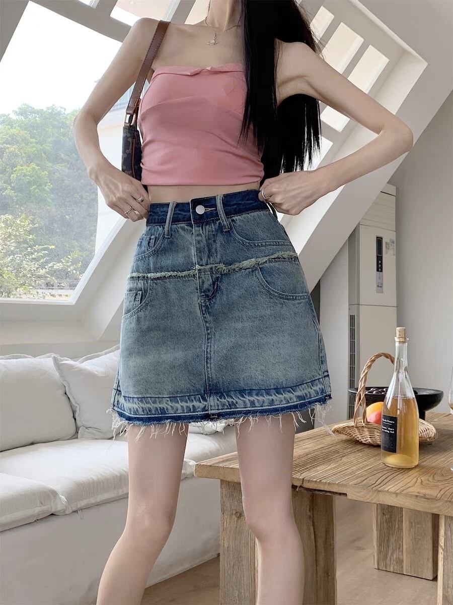 裾のフリンジデザインがお洒落なデニムのミニ丈スカートです。