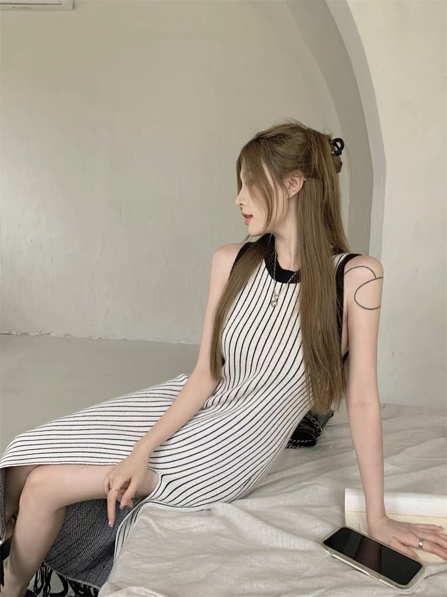 ストライプ フリンジワンピース G104CON0143