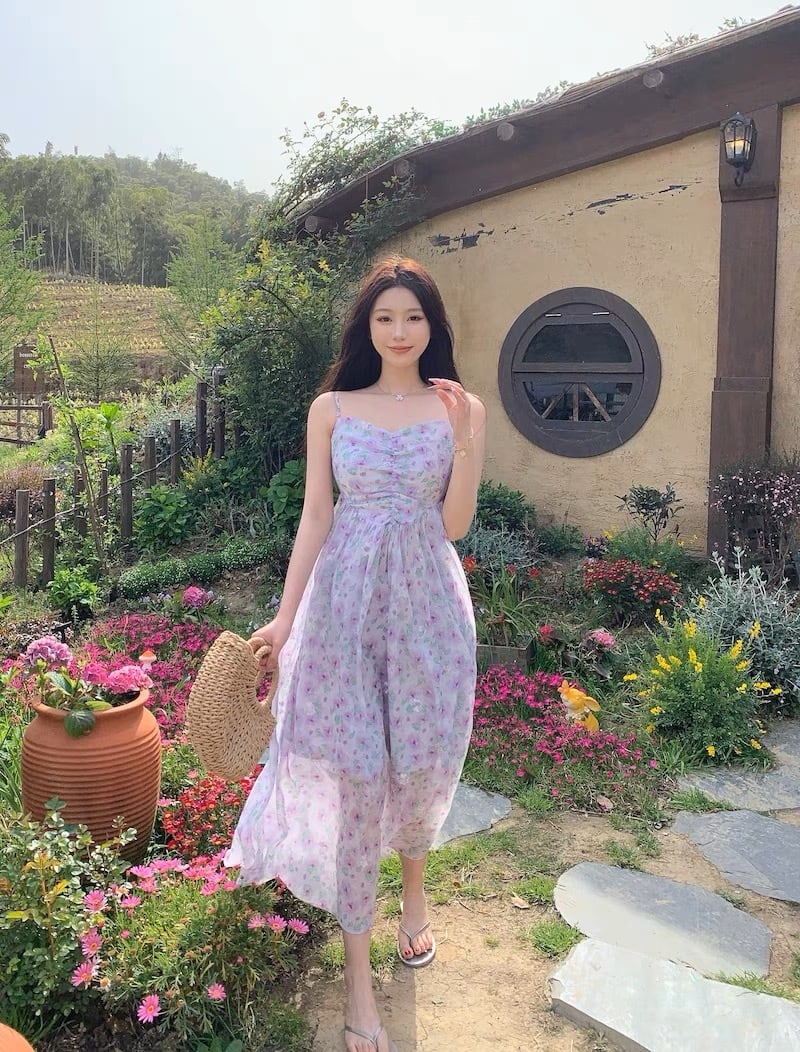 ラベンダー 花柄ワンピース G104CON0150