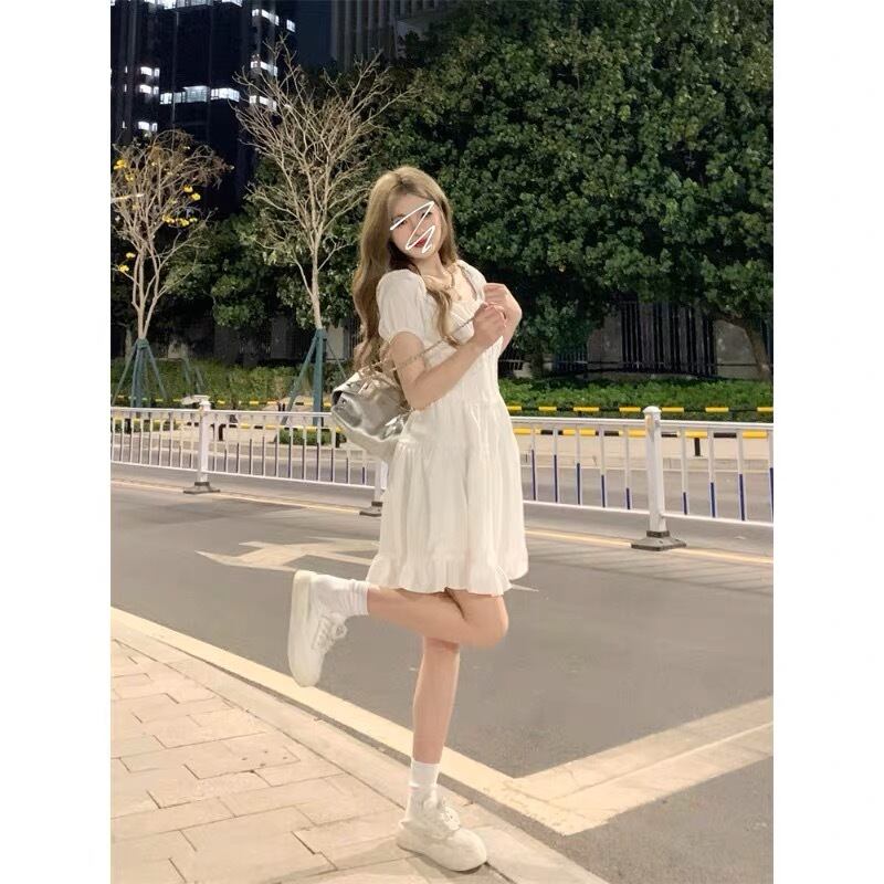 オフショルダーがお洒落な膝丈ワンピースです。