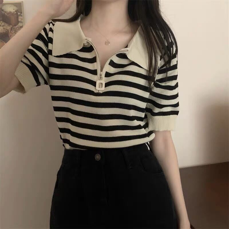ボーダー柄 ポロシャツ風ニットトップス G104CT0106