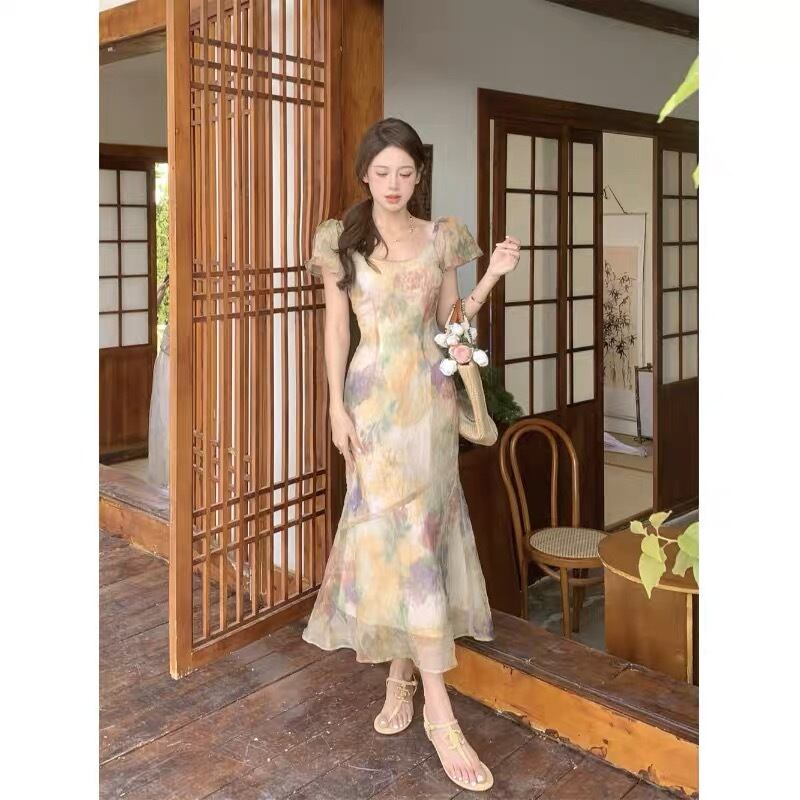 エレガント 花柄ロング丈ワンピース G104CON0171