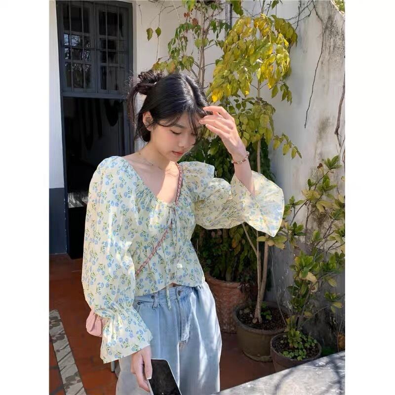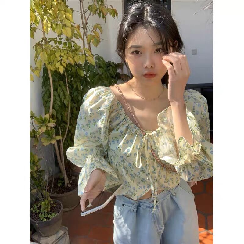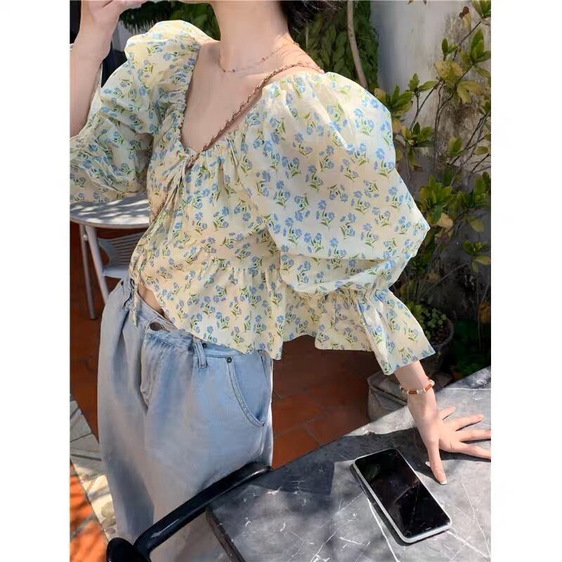 花柄が可愛いキャンディースリーブのトップスです。