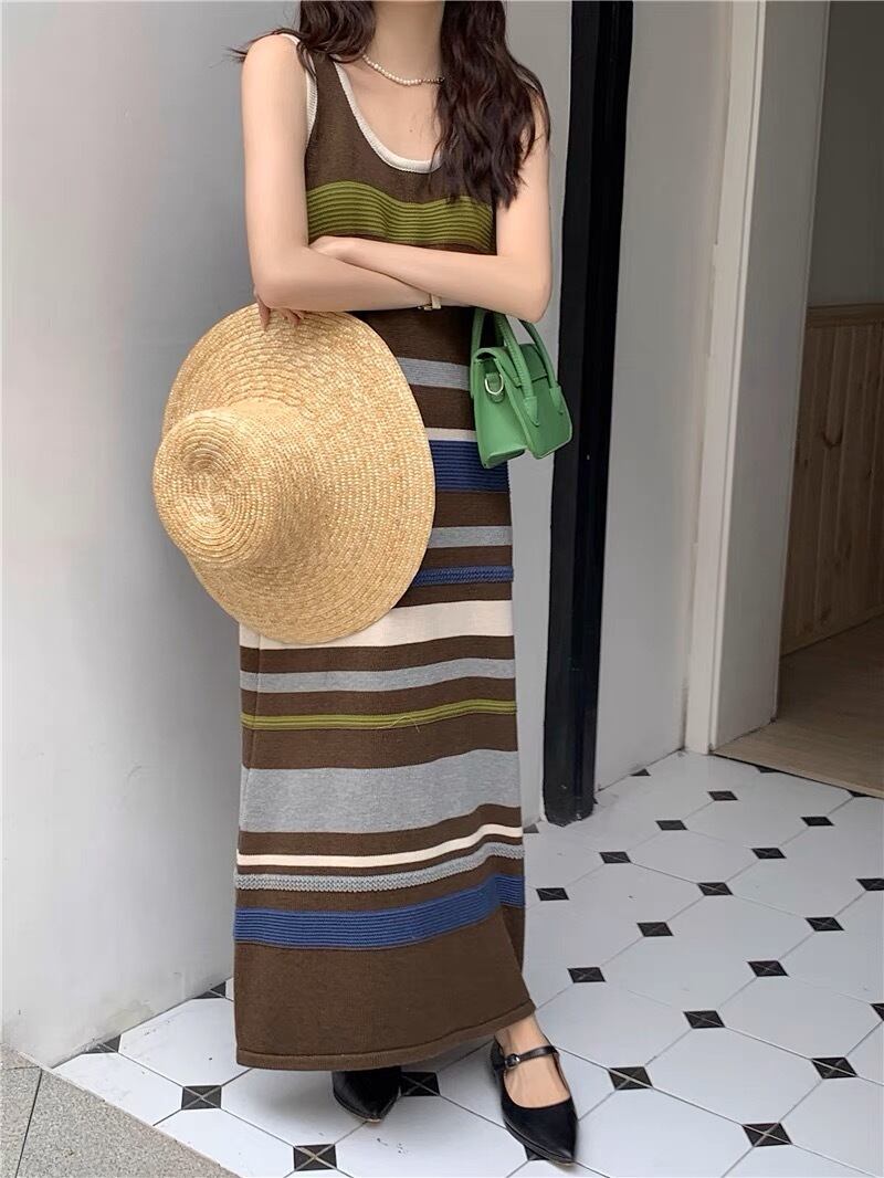 ノースリーブ ボーダー柄ワンピース G104CON0183