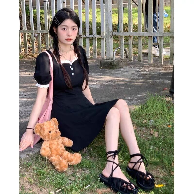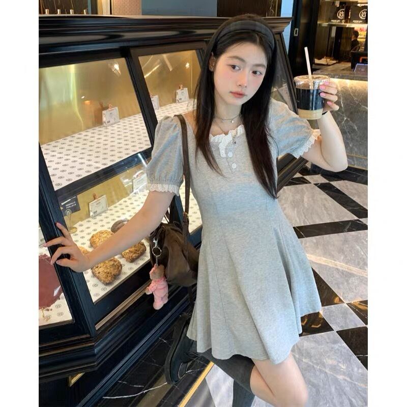 スタイル良く見えるミニ丈のフレアワンピースです。