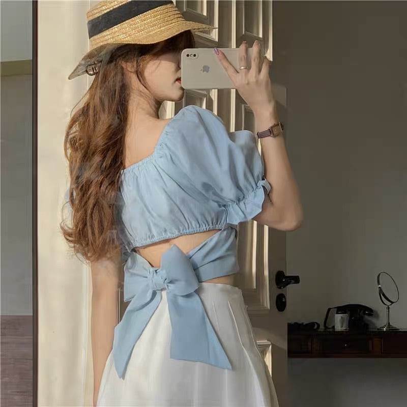 バックリボンが可愛いショート丈トップスです。