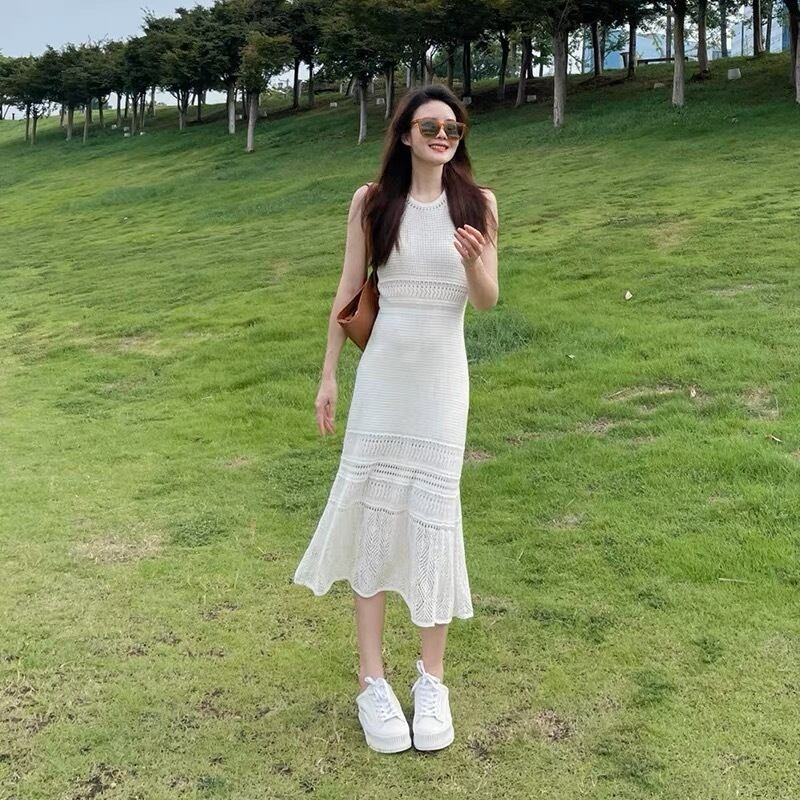 ホワイト納品爽やかなロングワンピースです。