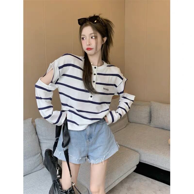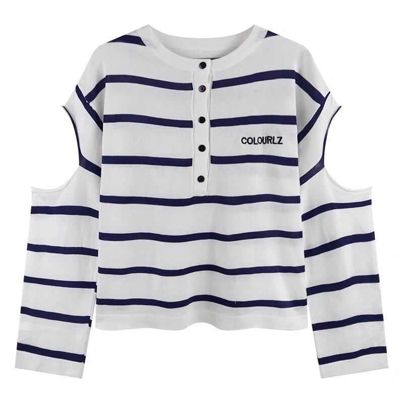 肩開き ボーダー柄トップス G104CT0143