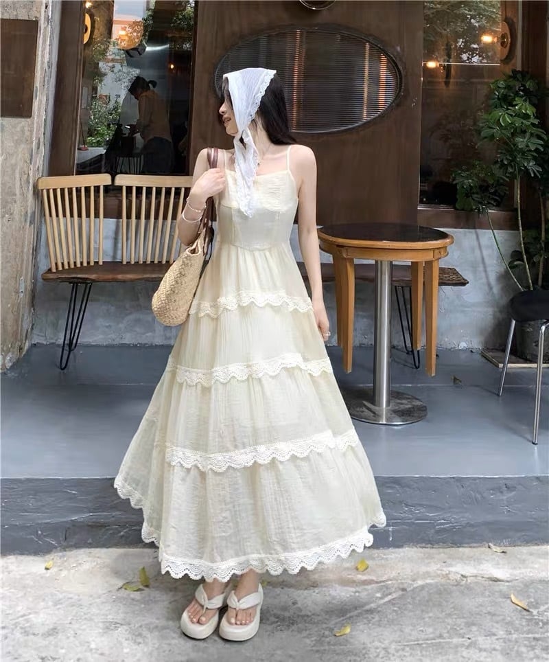 大人可愛いノースリーブのロング丈フレアワンピースです。