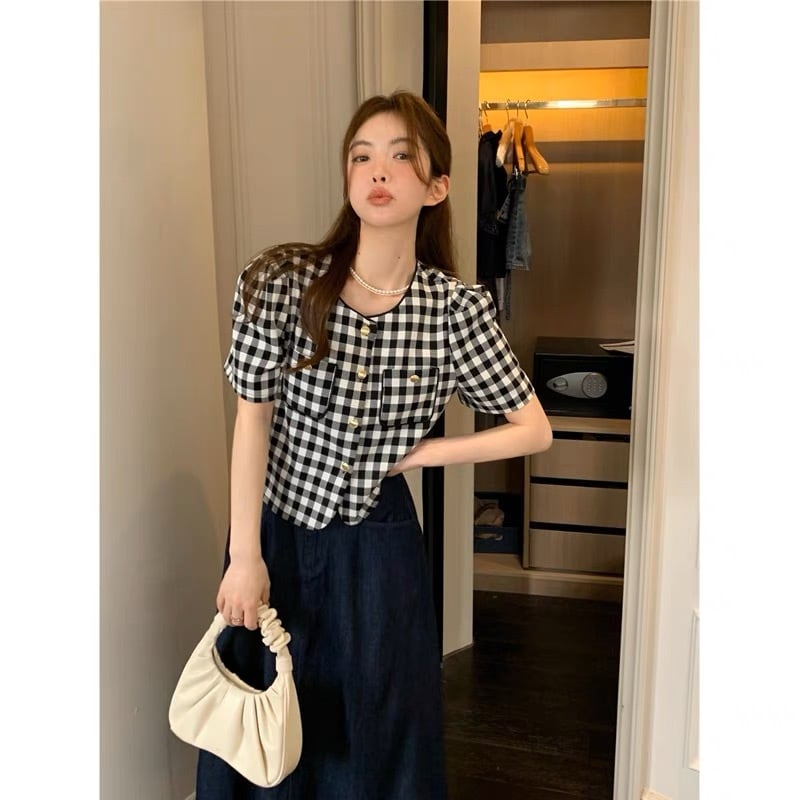 清楚系 チェック柄トップス G104CT0153