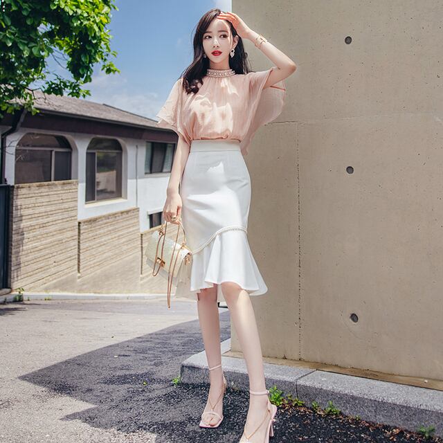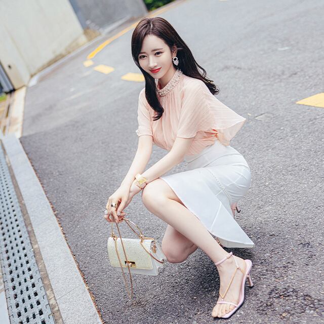 韓国ファッションセレクトショップliberal style.です。こちらはシアービジュー付きトップス×フレアスカート セットアップCST0019の商品ページです。 トレンドを抑えたおすすめのセットアップです。 上下でコーディネートできるので、さまざまなシーンで活躍してくれます。 トップスはシースルーながら肌を透けさせず上品に着こなせるデザイン。 ビジューがポイントのクレリック襟が、エレガントな雰囲気を漂わせます。 タイトスカートは、ヒップラインと膝周りを美しく魅せるシルエットで、 女性らしい曲線美が際立ちます。長め丈で、華奢な印象に。 時にはモードなスタイルを、時にはフェミニンなコーディネートを楽しんでみましょう。 控えめながらも洗練された印象を与える、あなたにぴったりのアイテムです。 【サイズ】 トップス S: 着丈51cm バスト96cm 肩幅75cm M: 着丈52cm バスト100cm 肩幅77cm L: 着丈53cm バスト104cm 肩幅79cm スカート S:着丈63ウエスト65 ヒップ87 M:着丈64 ウエスト69ヒップ 91 L:着丈65 ウエスト73 ヒップ95 ■発送につきまして ご注文いただきましてから 海外より検品をし、出荷いたします。 発注日(ご入金確認日)より 【10-21日程度】でお客様の元に届きます。 お急ぎの方はご了承ください。 サイズのお間違いがないよう、ご注文をお願いいたします。 ※ 商品の素材や測り方によって、若干の誤差(2cm程度)がある場合がございます。 ご了承ください。
