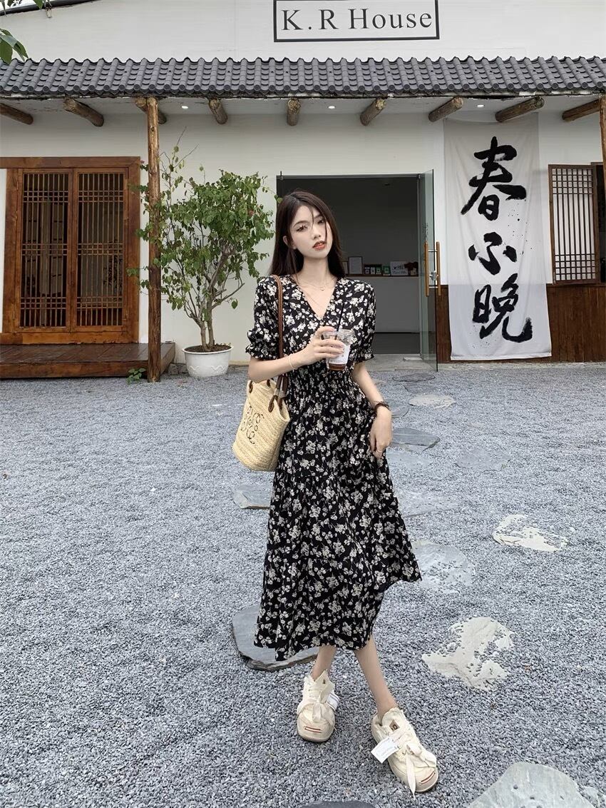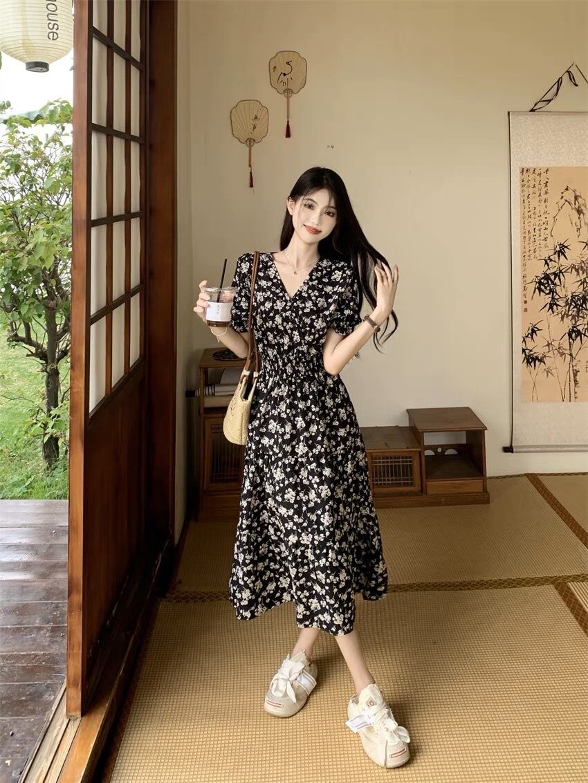 Vネック花柄ミモレ丈ワンピース G105CON0008
