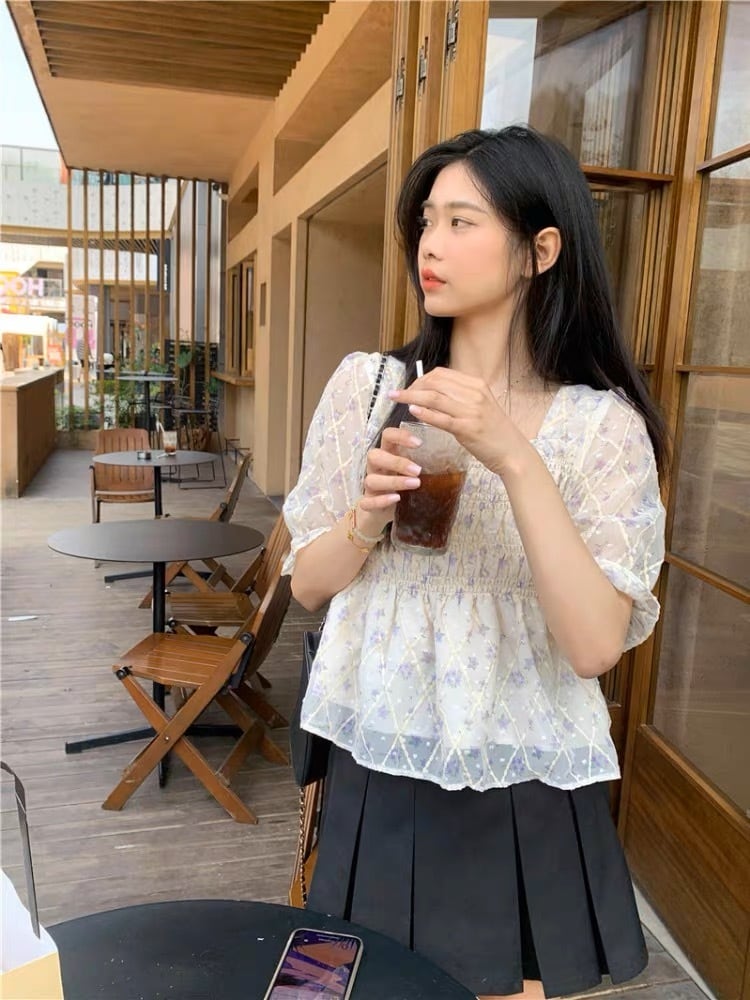 花柄が可愛いスクエアネックのトップスです。