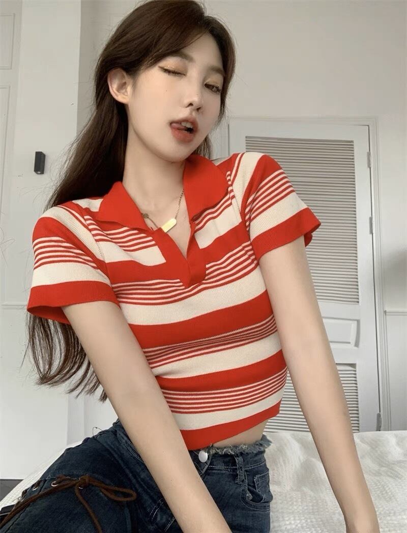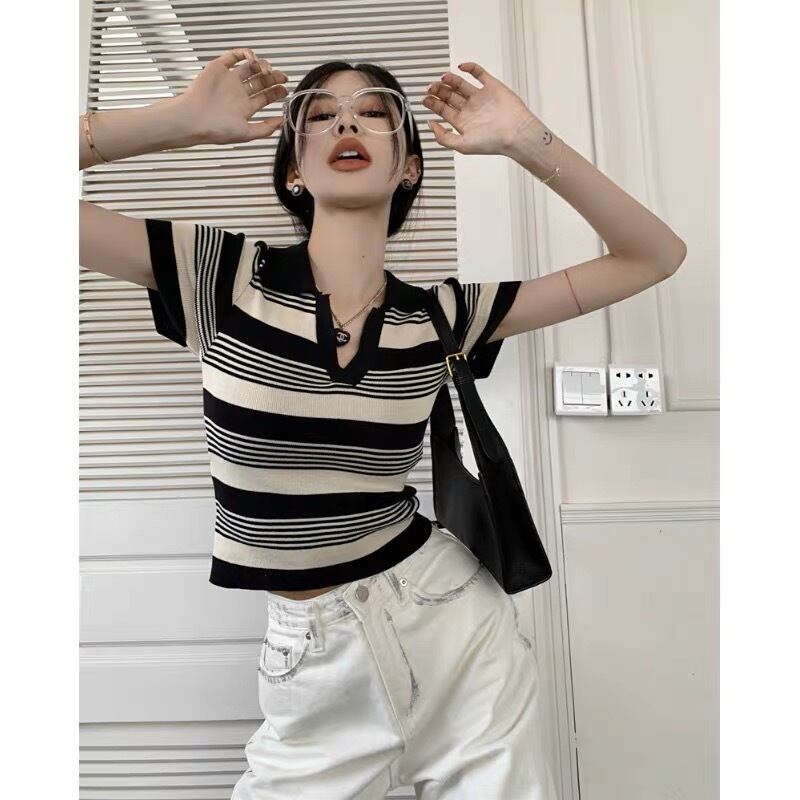 Vネックボーダー柄トップス G105CT0013