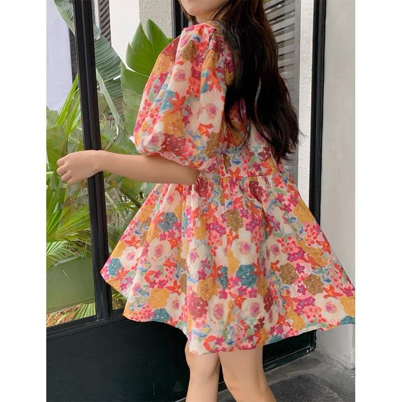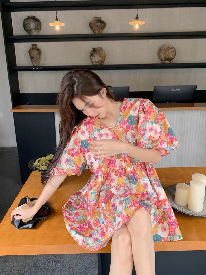 レトロな花柄が可愛いフレアワンピースです。